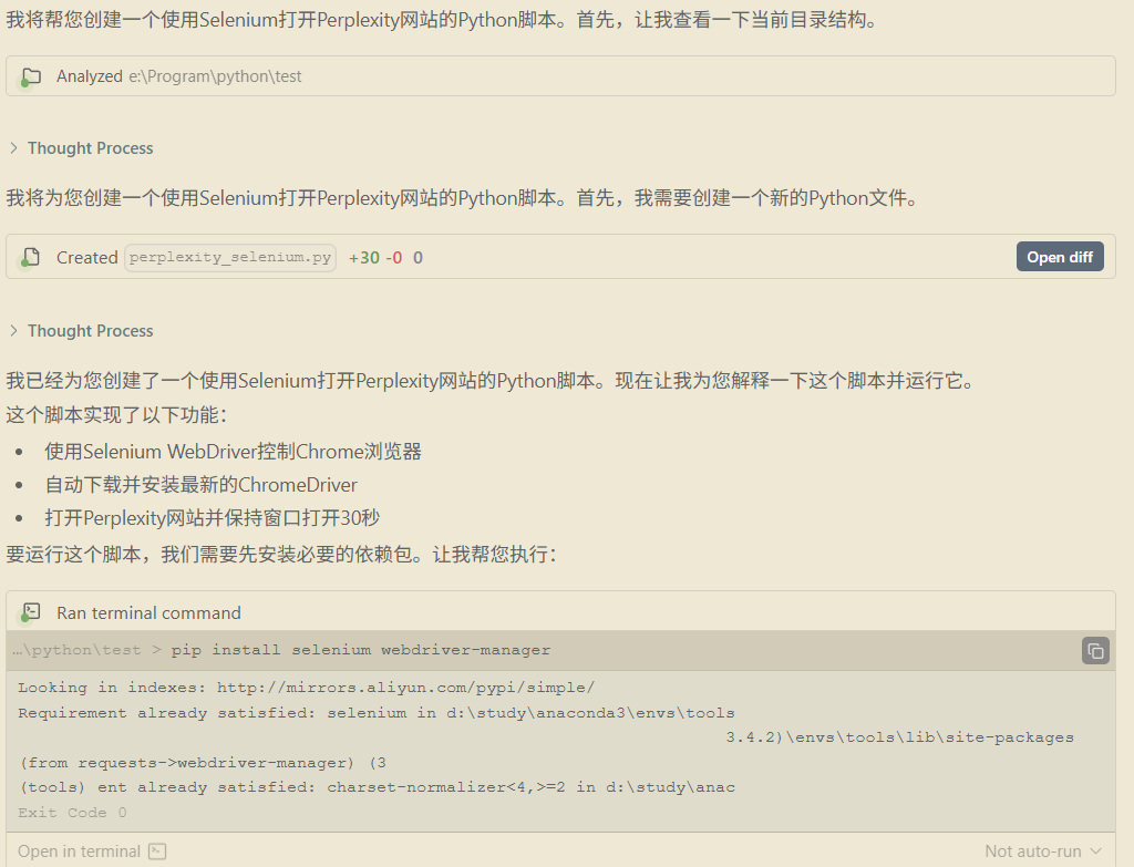 只打开了 chrome 浏览器,没有打开 perplexity 网站,同时出现错误内容输出