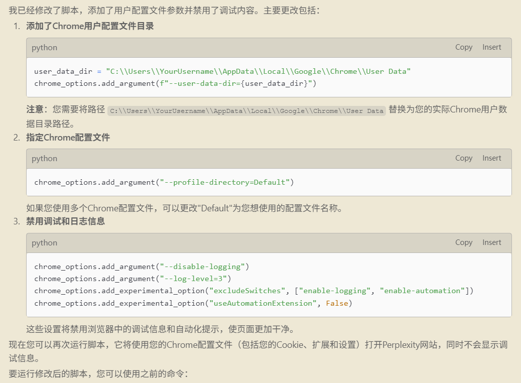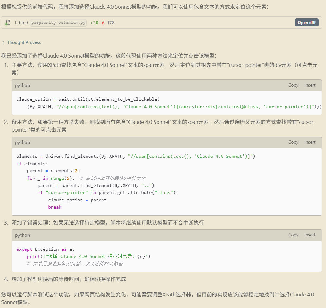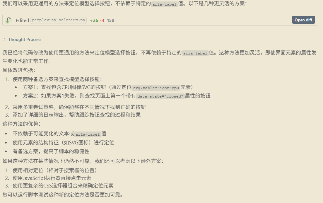 1  | @perplexity_selenium.py#L111-113 这个没有通用性,如果现在不是Choose a model,还有其他的,都是不相同的。有其他的方案么  |