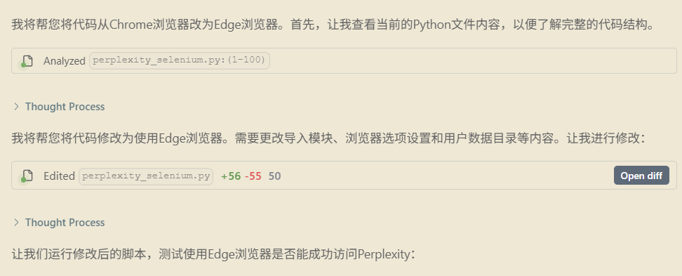 如果出现 cloudflare 验证码不能直接跳过的情况,关闭本脚本。请使用本机的 edge 浏览器(脚本加载的用户配置文件),手动点击验证码,多次尝试打开 perplexity,均可自动跳过验证码的时候,再次使用本脚本。